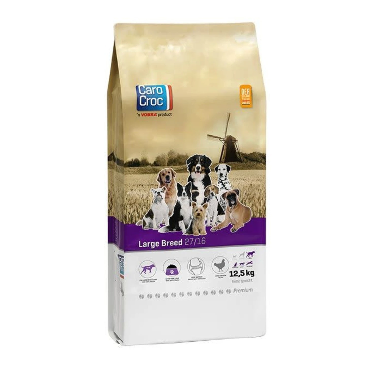 - CaroCroc Large Breed bevat 27% eiwit en 16% vet. Daarnaast bevat CaroCroc Large Breed een optimale omega-3 en -6 verhouding.