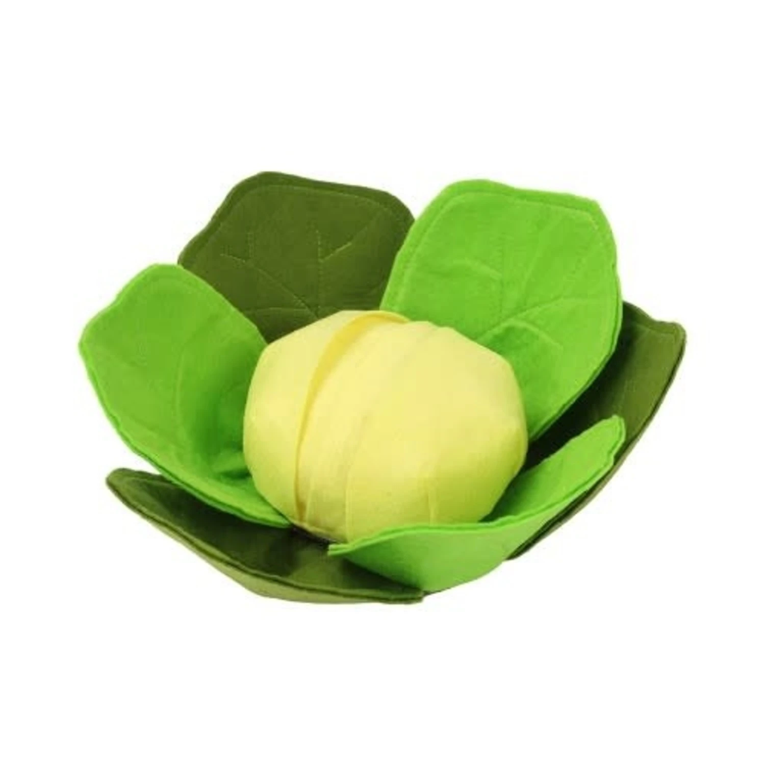Dit Hide and Seek snuffel speeltje is gemaakt in de vorm van een kool. Gemaakt van vilt is het zacht, maar toch stevig. Tussen de 3 donkergroene en 3 lichtgroene bladeren kun je lekkers stoppen. In het gele gedeelte van de kool kun je 2 lagen stof naar opzij openen. Hier kun je ook lekkers in verstoppen en het zo moeilijker maken.