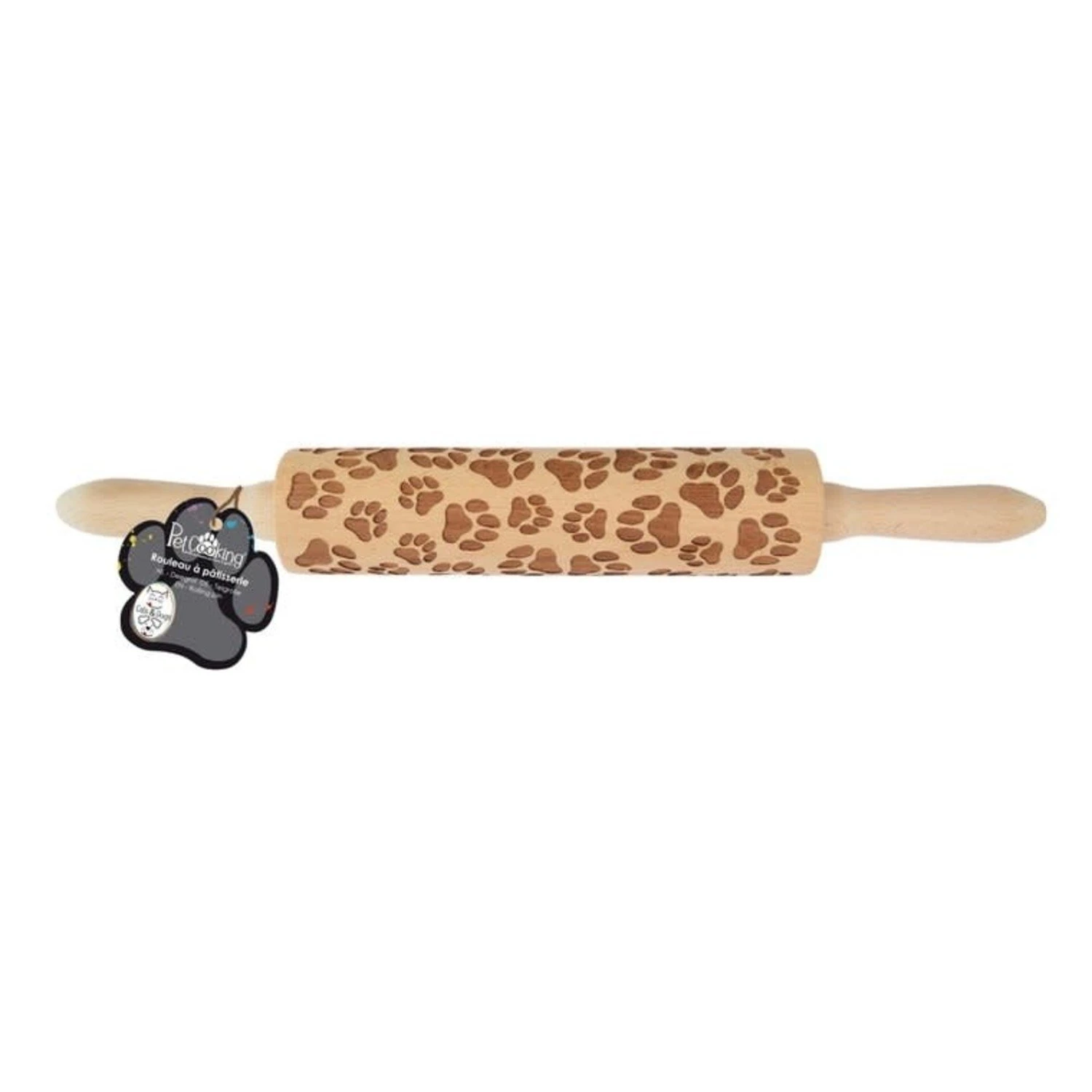 Houten deegrol met het patroon van kleine pootjes. Dit geeft jouw deeg een schattige textuur met kleine pootjes.