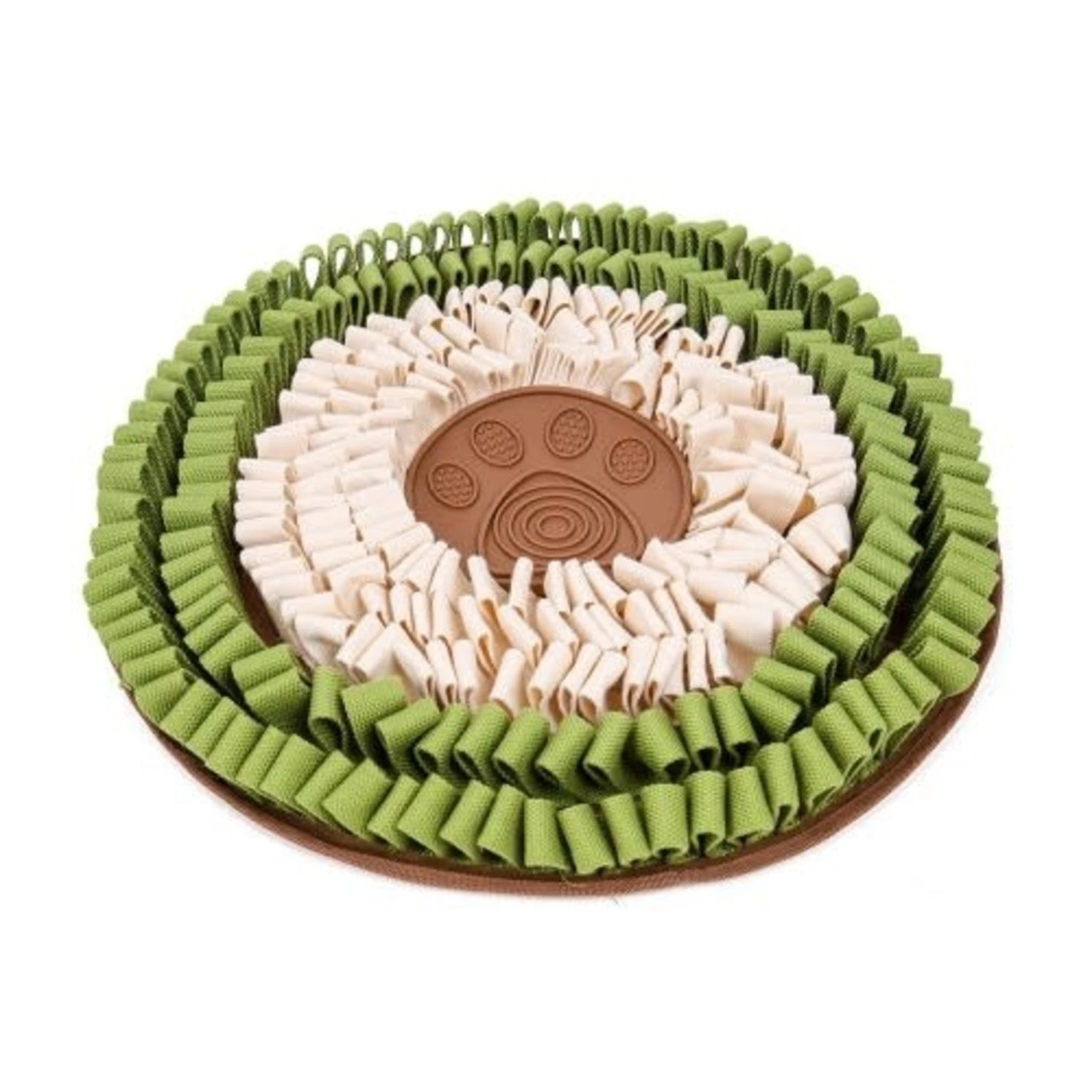 Het is gemaakt van niet-giftige en duurzame materialen. De ronde snuffelmat mag in de wasmachine op een handwas programma.
