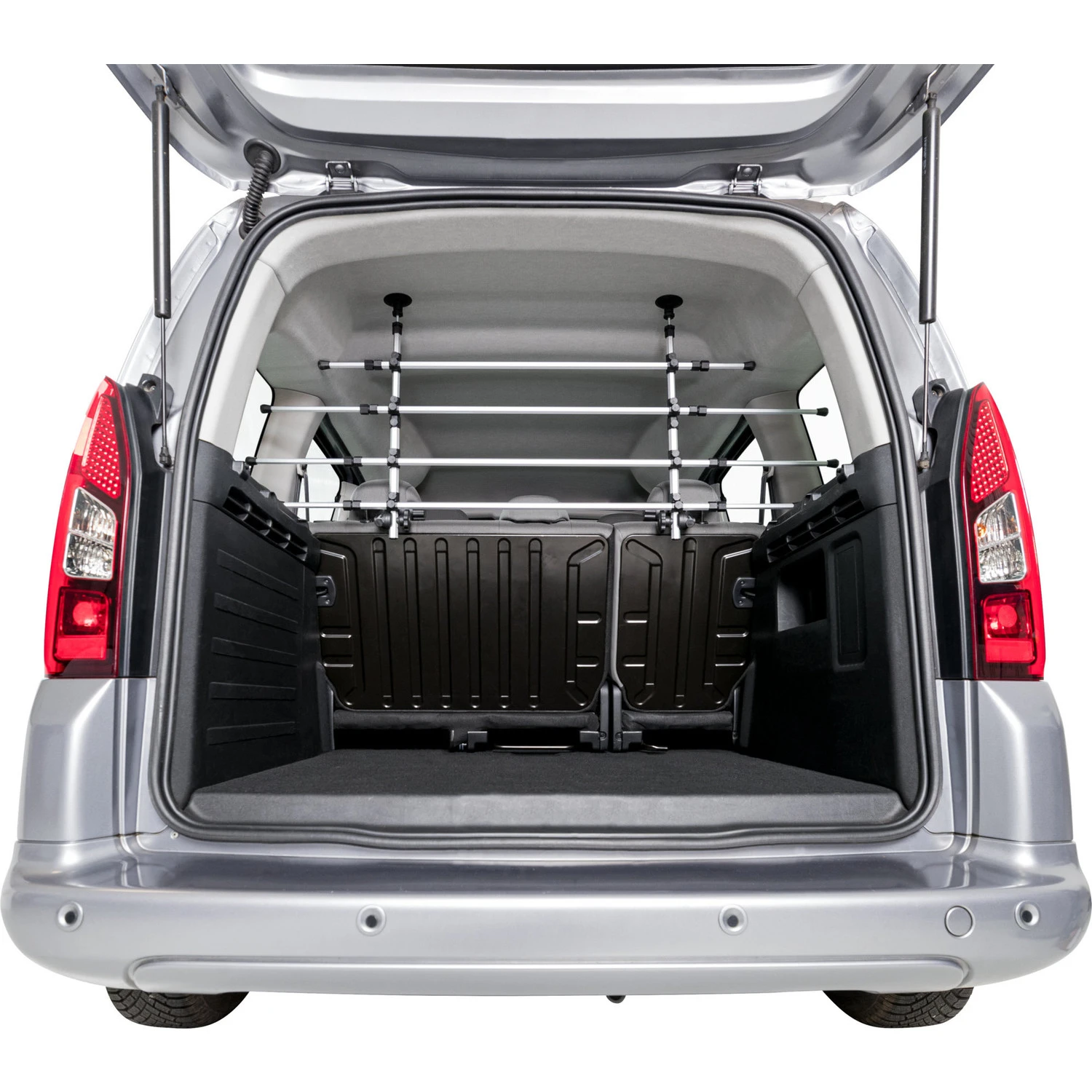 Dit aluminium autorek is gemaakt voor veilig vervoer van dieren of bagage in de achterbak van de auto. Door de vaste montage aan de hoofdsteunen van de achterbank kan de gehele kofferbak gebruikt worden. Het hondenrek bestaat uit 3 delen en is in de breedte en in de hoogte traploos verstelbaar. Lichtgewicht door het gebruik van aluminium.