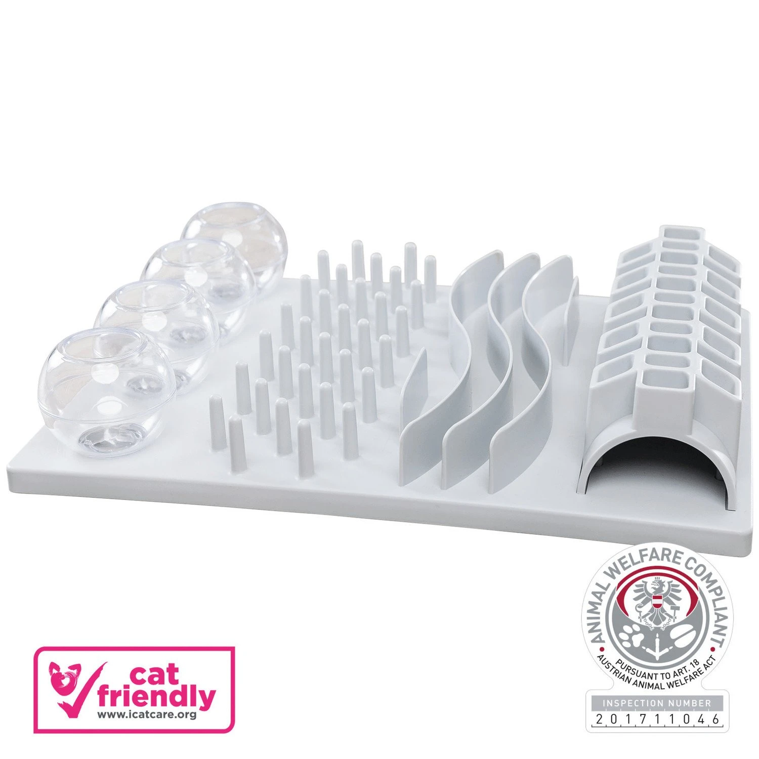Het Fun Board is een kattenpuzzel speciaal geschikt voor alle niveaus. Met verschillende kommetjes, pennetjes en een golf zijn er diverse technieken nodig om bij alle lekkernijen te komen.